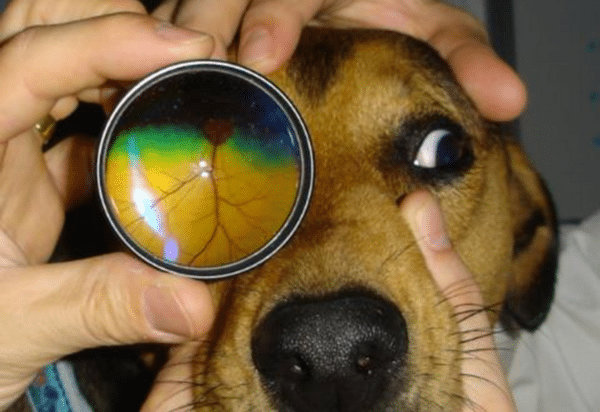kép: PRA-val érintett kutya szemfeneke (fundusfelvétel)